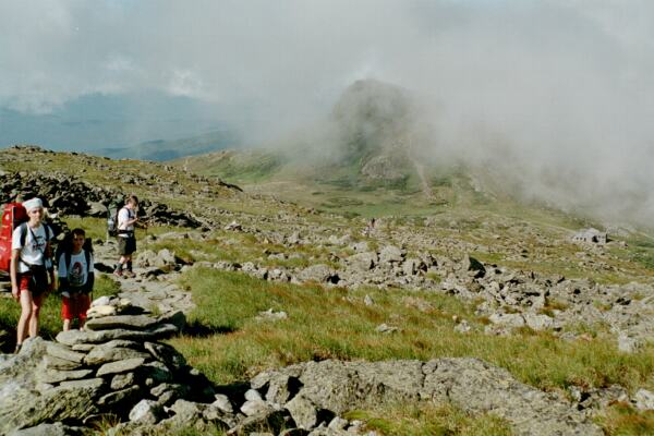 Leaving Lakes of the Clouds Hut with Mount Monroe in the Background