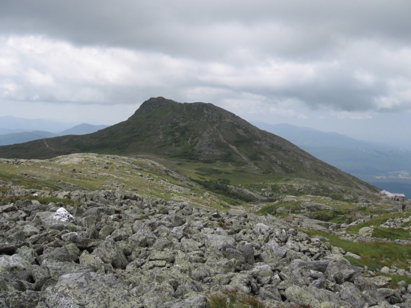 Lakes of the Clouds AMC Hut with Crawford Notch in the background.