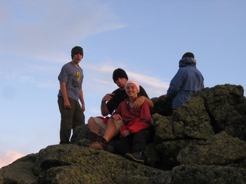 Dinner at Lake of the Clouds AMC Hut, Josh, Kat, and Andy, July 31, 2007
