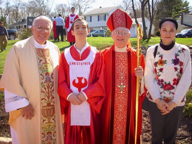 Albert and Liz Posing with the Priest and Bishop after Confirmation, April, 6, 2008, Orangeburg, NY