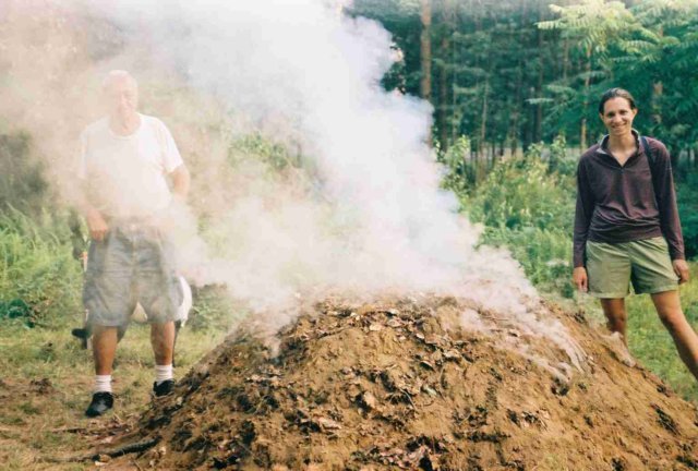 Exposing the opened wooden chimney at the uncovered top of the covered dome