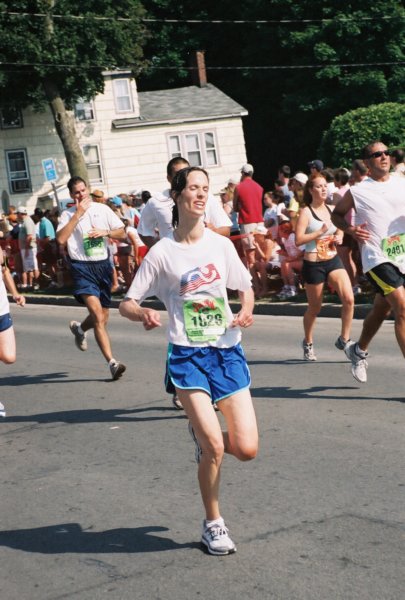 Benjamin approaching the finish line at the Boilermaker 15K Road Race, July 8, 2007
