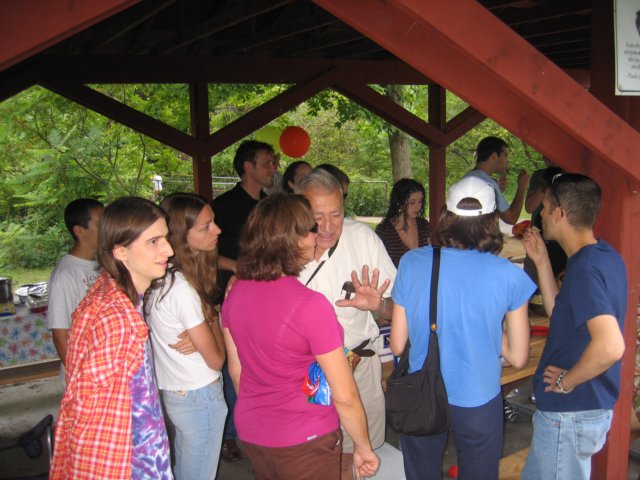 Manlius Municipal Park for Dad's 75th surprise birthday party, Cynthia, Lori, Cathy (Mom), and John, August 19, 2007.
