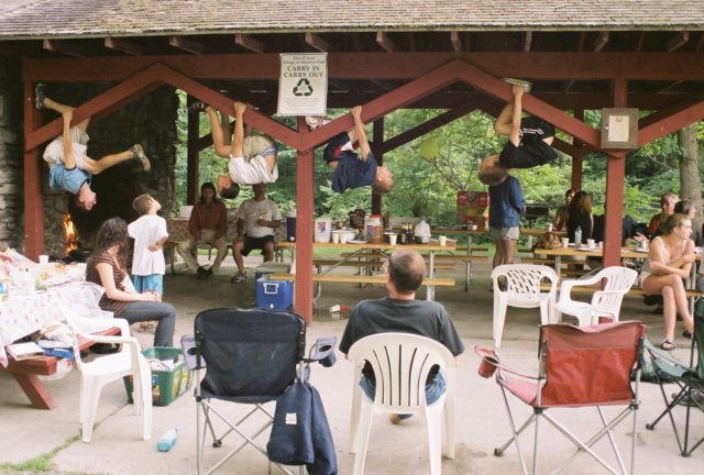 Manlius Municipal Park for Dad's 75th surprise birthday party, enjoying the party - Melissa, Mary, and Alyana, August 19, 2007.