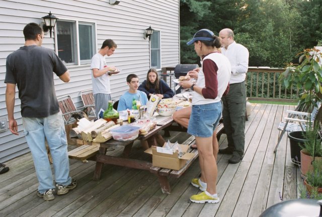 Daddy removing the processed jars of tomatoes out of the boiling water. Valerie standing there watching and drinking a glass of wine. September 2, 2007.